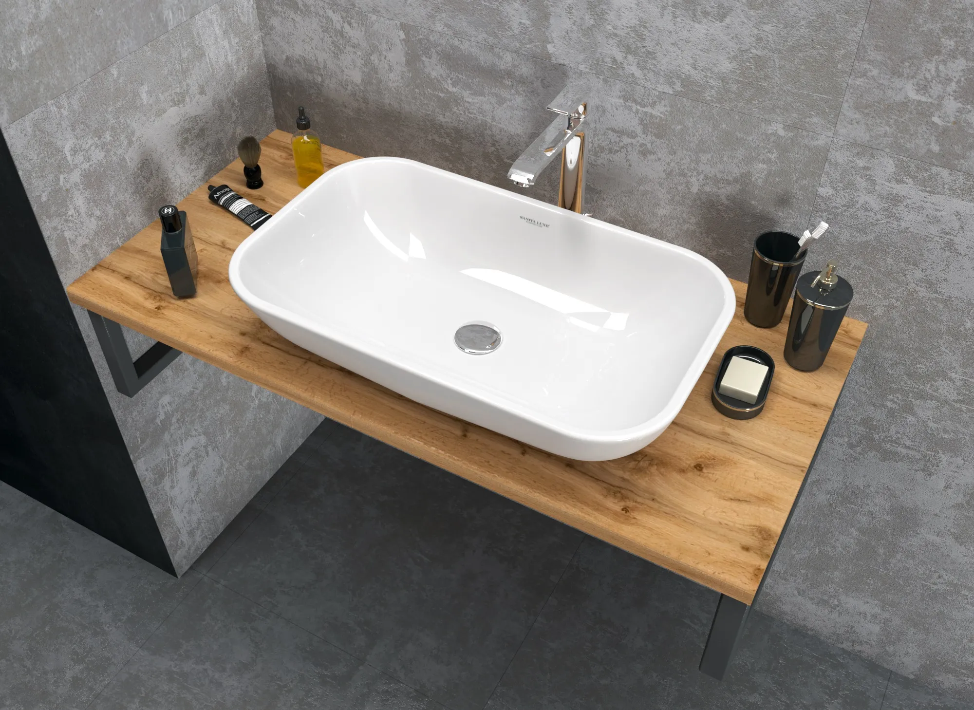 Функциональная и стильная столешница в востребованной и актуальной стилистике LOFT. Минималистичная и одновременно эффектная, она изготовлена в универсальной прямоугольной форме и дополнена такими практичными деталями, как металлические кронштейны, которые можно использовать в качестве рейлингов. Столешница выполнена из проверенных материалов, прекрасно защищена от воздействия влаги, не склонна к появлению сколов, царапин, трещин и других дефектов. Она подойдет для ванных комнат любых размеров и практически любой цветовой гаммы - от сдержанной до яркой и насыщенной.
