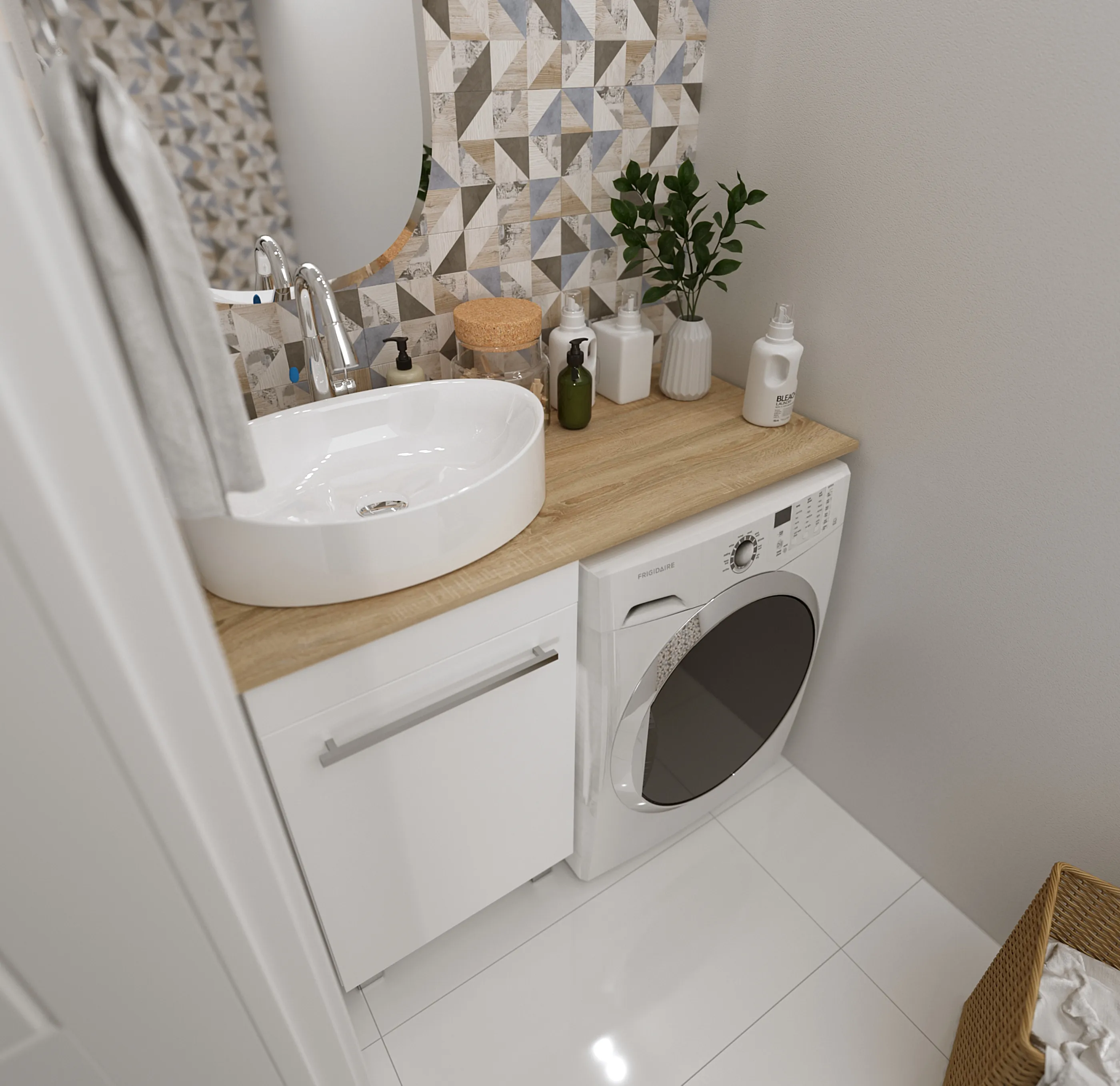 Столешница под стиральную машину, которая позволяет с максимальным комфортом и удобством организовать пространство даже в небольшой ванной комнате. Исполненная в универсальной и одновременно стильной прямоугольной форме, она включает в себя место под раковину и функциональную зону для размещения косметики, личных принадлежностей и аксессуаров. Материалом исполнения столешницы является МДФ, а ее дополнительная защита от воздействия влаги и внешних повреждений обеспечивается покрытием корпуса пленкой ПВХ.