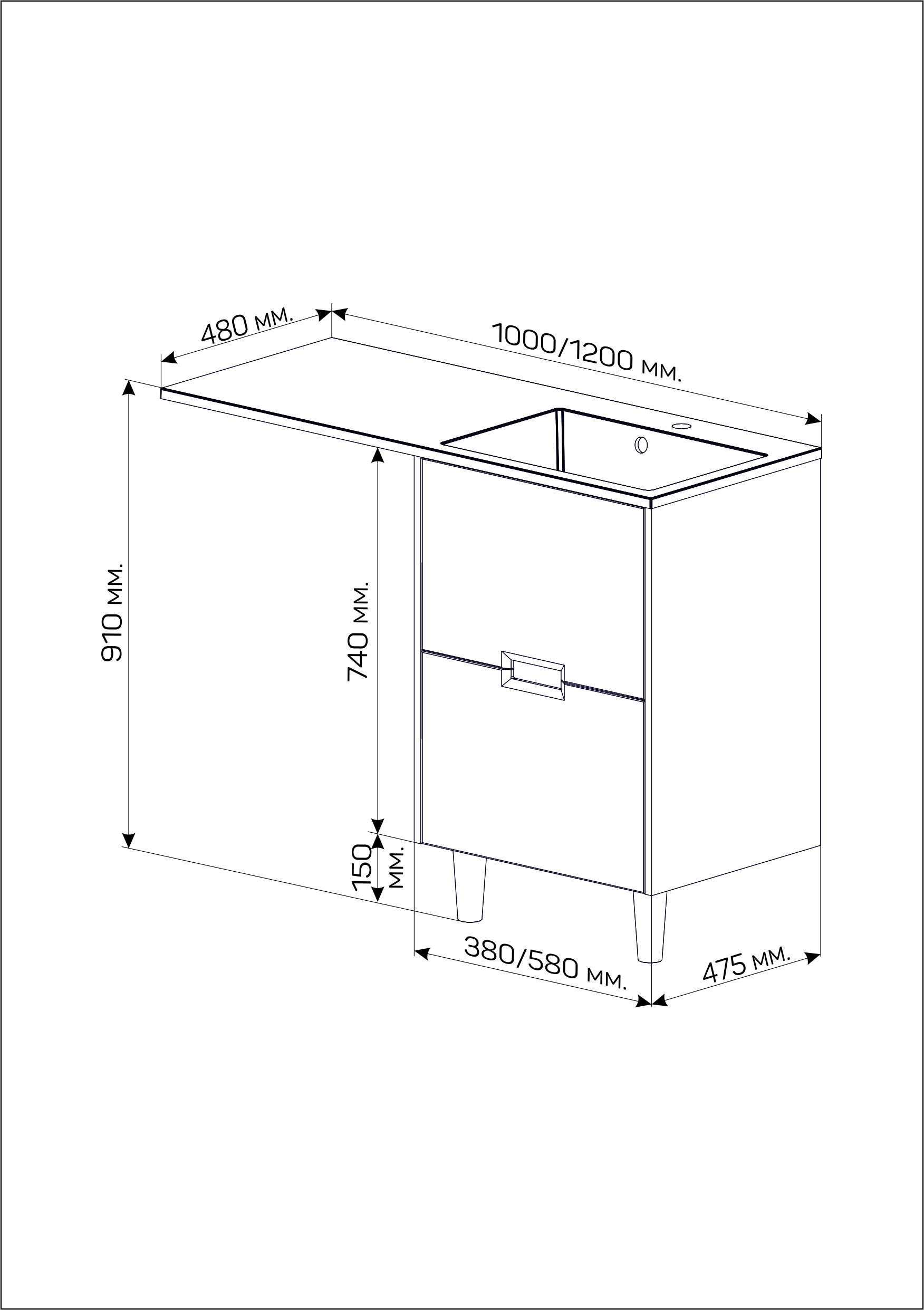 *Раковина из искусственного камня приобретается отдельно, два цвета на выбор (белый и графит), расположение и правое, и левое.