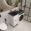 Тумба под раковину* Maid – элегантное решение "2-в-1", которое объединяет функциональность и стиль, позволяя гармонично разместить раковину и стиральную машину в ванной комнате. Белый цвет легко сочетается с другими цветами и стилями интерьера, предоставляя свободу в оформлении ванной комнаты. Акцентные опоры  черного цвета гармонично дополнят ваш выбор: строгая графитовая или нежная белая раковина – для создания неповторимого стиля ванной комнаты.