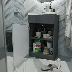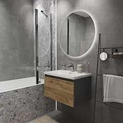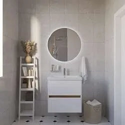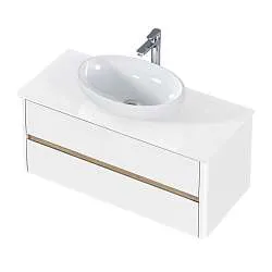 Тумба с раковиной, воплощающая собой легкость, элегантность и вневременной дизайн, который остается актуальным вне зависимости от мимолетных модных тенденций. Изящный фасад с фрезеровкой и глубокая раковина с высокими бортами создают невероятное сочетание эстетики и функциональности, которое будет актуально в пространствах любой стилистики - от сдержанных и благородных традиционных до стильных современных и смелых эклектичных. Нижний ящик тумбы имеет увеличенные габариты для удобного хранения бытовой химии и прочих крупных предметов, а два верхних ящика небольших размеров идеальны для размещения косметики и аксессуаров.Характеристики: